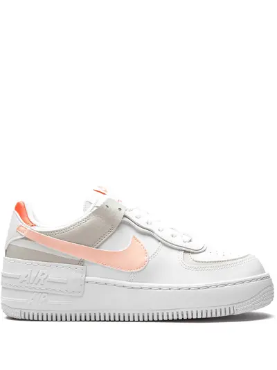 White/crimson tint leather Air Force 1 Shadow sneakers from NIKE featuring round toe, flat rubber sole, front lace-up fastening, panelled design, branded insole and signature Swoosh logo detail. These styles are supplied by a premium sneaker marketplace. Stocking only the most sought-after footwear, they source and curate some of the most hard to find sneakers from around the world..