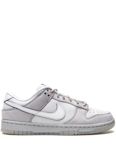 Dunk Low "Wolf Grey/Pure Platinum" sneakers from Nike featuring grey/white, leather, panelled design, signature Swoosh logo detail, perforated, logo patch at the tongue, round toe, front lace-up fastening and rubber sole. These styles are supplied by a premium sneaker marketplace. Stocking only the most sought-after footwear, they source and curate some of the most hard to find sneakers from around the world..