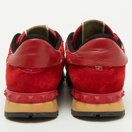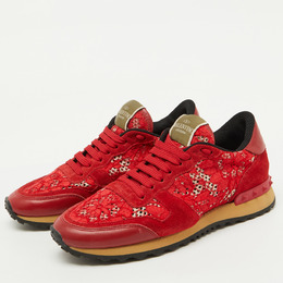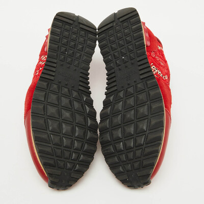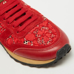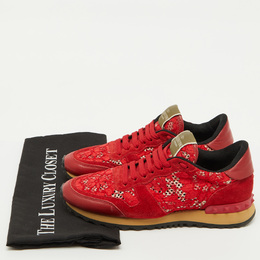 Valentino Red Suede and Lace Rockrunner Low Top Sneakers Size 37 1086221