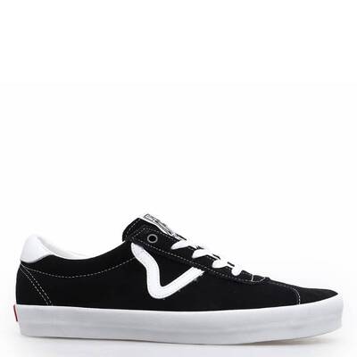 Vans Mens Sneakers. SKU: VN000CQRBZW-BLACK/WHITE. Color: Black. Vans Sport Low-Top Sneakers. This retro low-top sneaker features updated proportions with a lower profile, lace-up closure, suede uppers with leather accents, heritage V sidestripes, an old-school logo label, single-wrap sidewalls, supportive padded collars, and signature rubber waffle outsoles. <br/><br/><b>Please visit the brand website for sizing information.</b>