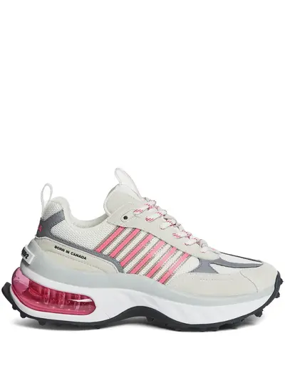 white/grey/fuchsia pink panelled design mesh panelling front lace-up fastening pull-tab at the heel appliqué logo stripe detailing pull-tab at the tongue round toe branded insole chunky rubber sole