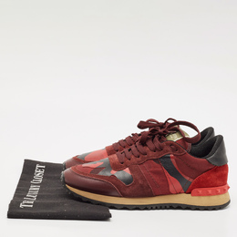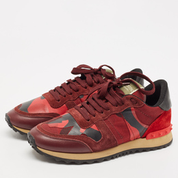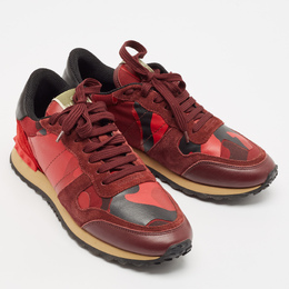 Valentino Red/Burgundy Leather and Suede Rockrunner Sneakers Size 38 1112701