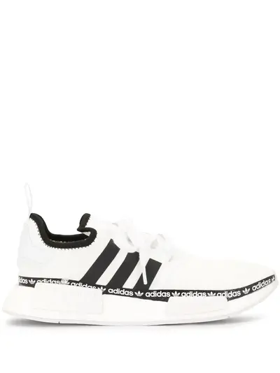 white signature three-stripe logo logo trim round toe front lace-up fastening pull-tab at the heel flat rubber sole