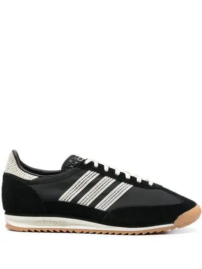 black front lace-up fastening flat rubber sole signature 3-Stripes logo round toe