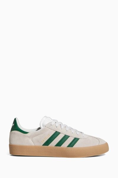 The iconic adidas Gazelle is reimagined for skateboarding with enhanced durability and performance features. • Enhanced with higher foxing tape and a grippy outsole for superior board control. • Double-layered toe for added durability during every session. • Molded sock liner ensures a comfortable, secure fit.