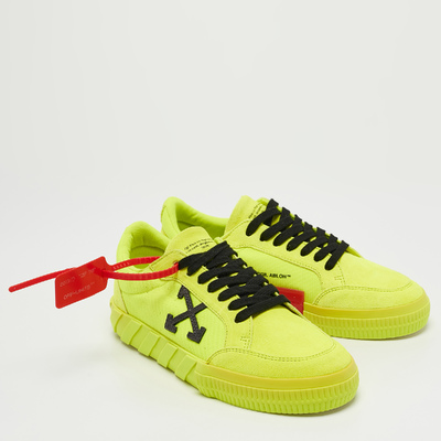 Off-White Off White Neon Yellow Canvas and Suede Vulcanized Low Top Sneakers Size 39 1122985