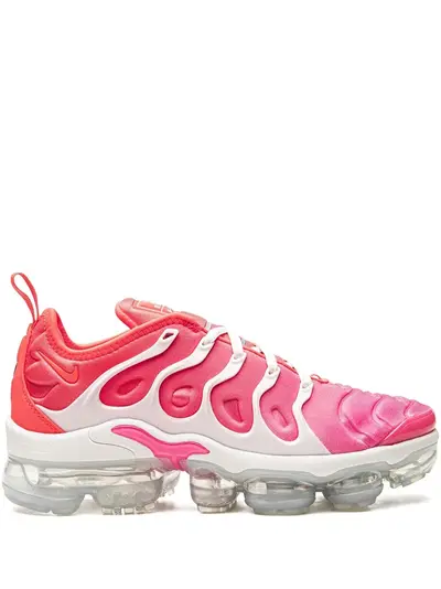 Air Vapormax Plus sneakers from NIKE featuring pink, white, contrasting panel detail, signature Swoosh logo detail, round toe, front lace-up fastening, logo patch at the tongue, pull-tab at the heel, branded insole and transparent rubber sole. These styles are supplied by a premium sneaker marketplace. Stocking only the most sought-after footwear, they source and curate some of the most hard to find sneakers from around the world..
