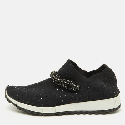 Jimmy Choo Black Knit Fabric Crystal Embellished Verona Sneakers Size 35 1132973