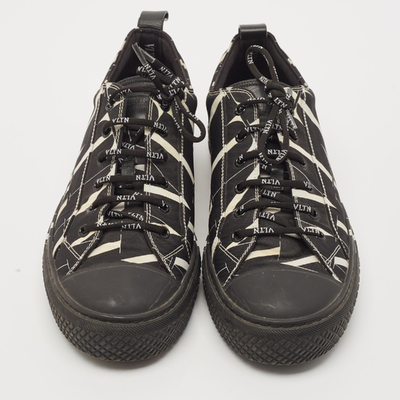 Crafted in Italy, these sophisticated sneakers by Valentino boast a striking black and white canvas design that captures attention. The lace up style offers a secure fit while the rubber sole ensures comfort throughout the day. Emblazoned with the iconic VLTN TIMES motif, these sneakers are an embodiment of contemporary elegance.