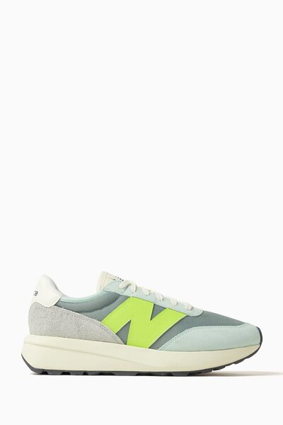 New Balance's 370 sneakers are an ode to '70s heritage styles, underpinned by modern contrasts and everyday comfort. • The breathable uppers are made from mesh with suede and leather overlays • Branded tongues and heel counters complete the pair • Rubber tread soles deliver reliable traction