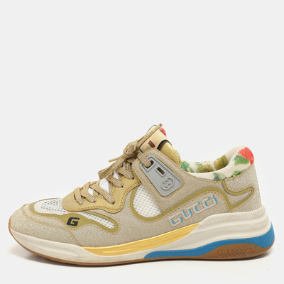 Gucci Cream/Metallic Leather and Glitter Ultrapace Low Top Sneakers Size 36.5 1146182