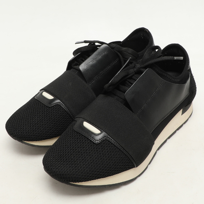 Balenciaga Black Mesh And Leather Race Runner Low Top Sneakers Size 41 1149625