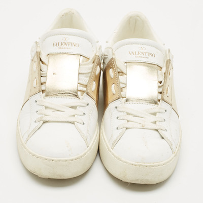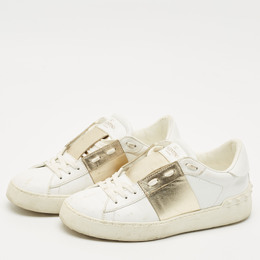 Valentino White/Gold Leather Open Low Top Sneakers Size 36.5 1172474