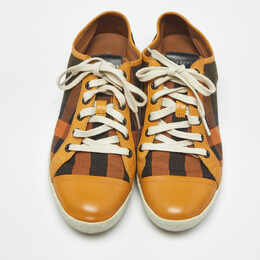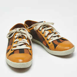 Burberry Orange Check Canvas and Leather Harrowby Sneakers Size 38 1183114
