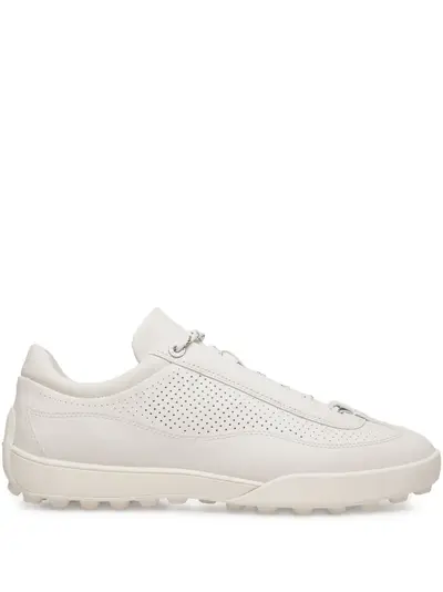 white front lace-up fastening mesh panelling flat rubber sole logo-debossed tongue