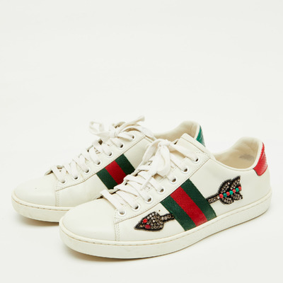 Gucci White Leather Arrow Embellished Ace Sneakers Size 36.5 1191833