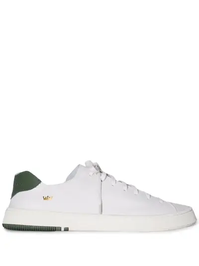 white leather front lace-up fastening logo print to the side contrasting heel counter round toe branded insole flat rubber sole