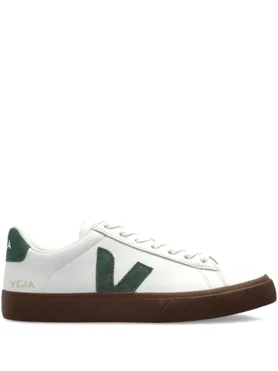 white leather upper green suede V logo lace-up fastening flat rubber sole round toe