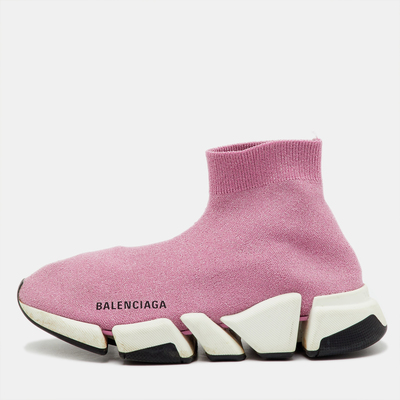 Balenciaga Metallic Pink Knit Fabric Speed Trainer Slip On Sneakers Size 37 1204127