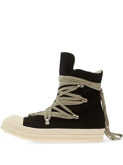 black lace-up fastening side-zip fastening metal eyelets high-top design flat sole