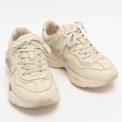 Soft cream leather and a chunky silhouette give the Rhyton sneakers an effortlessly cool retro edge. With Gucci’s unmissable branding and thoughtful detailing, these sneakers make an impact, pairing easily with everything from tailored trousers to casual denim.