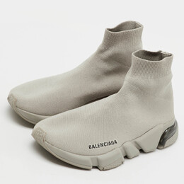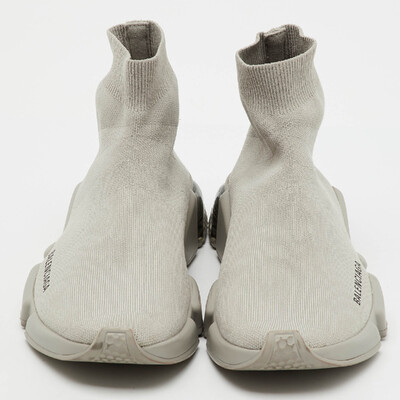 Balenciaga Light Grey Knit Fabric Speed Trainer Clear Sole Sneakers Size 38 1222180