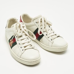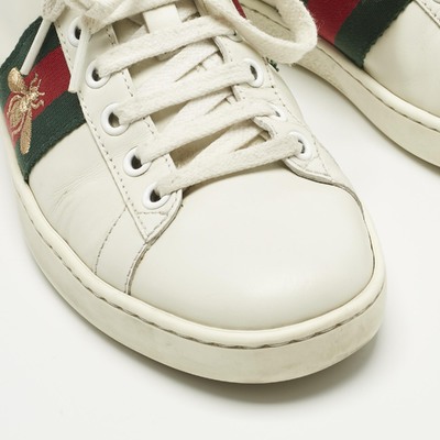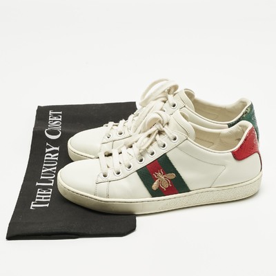Gucci White Leather and Snakeskin Embossed Leather Ace Lace Up Sneakers Size 35 1222118