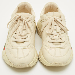 Gucci Cream Leather Rhyton Lace Up Sneakers Size 39.5 1220997