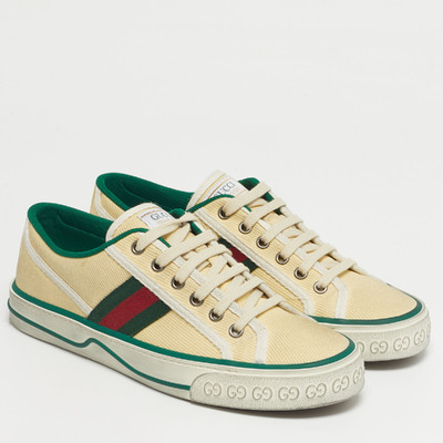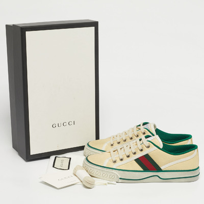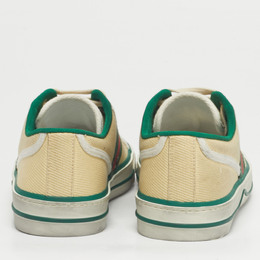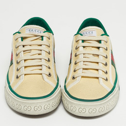Gucci’s Tennis 1977 sneakers in cream canvas revive a vintage silhouette with subtle green and red Web detailing. The low profile shape and textured sole nod to the house’s sporting heritage. Style them with cropped jeans or pleated skirts for preppy luxe appeal.