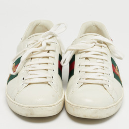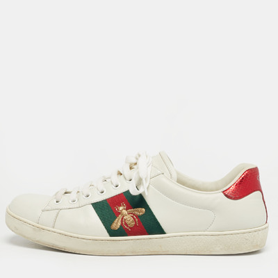Gucci White Leather and Python Embossed Leather Ace Low Top Sneakers Size 41 1222709