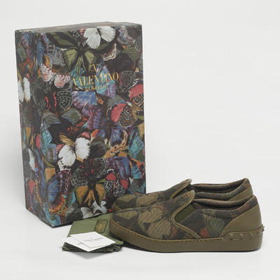 Valentino Green Canvas and Leather Slip On Sneakers Size 40 1222572