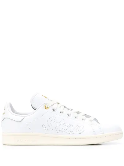 white leather round toe front lace-up fastening logo patch at the tongue branded insole flat rubber sole. POSITIVELY CONSCIOUS: adidas Group scores 4 out 5 with independent ethical brand rating agency Good On You. It uses eco-friendly materials in many products – 100% of its cotton is from sustainable sources and it's committed to use 100% recycled polyester by 2024. It traces and audits almost all of its supply chain to ensure good labour standards, and has committed to reduce carbon and water stress across its whole supplier base.