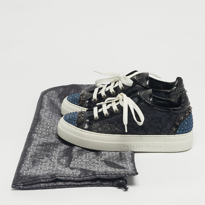 Edgy meets luxe in these Philipp Plein sneakers, blending navy blue and black leather with lace overlays and bold stud embellishments. The lace up style offers a secure fit while delivering standout attitude. Ideal for those who love their streetwear with a glam twist.