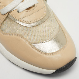 Casadei reimagines everyday ease with these beige leather and mesh sneakers. Soft neutral tones meet subtle shimmer, giving the pair lift while staying grounded in comfort. Finished with a leather sole and lace up design, they strike the balance between casual rhythm and luminous detail.