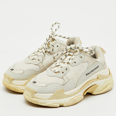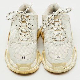 Balenciaga White/Grey Faux Leather and Mesh Triple S Low Top Sneakers Size 38 1222740
