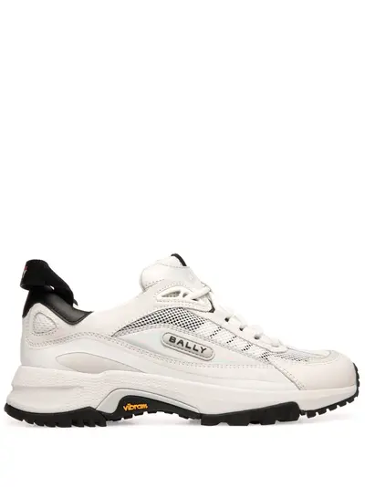 cream white/black/silver-tone calf leather colour-block panelled design logo patch to the side and at the tongue stripe detailing logo pull-tab at the heel round toe front lace-up fastening branded insole chunky rubber sole