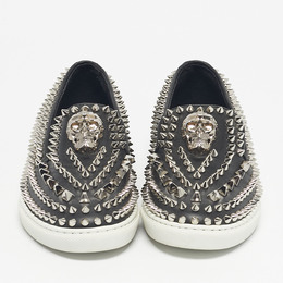 Philipp Plein Black Leather Studded Skull Slip On Sneakers Size 37 1225667