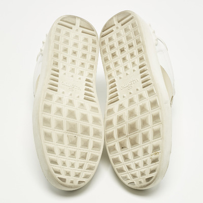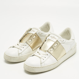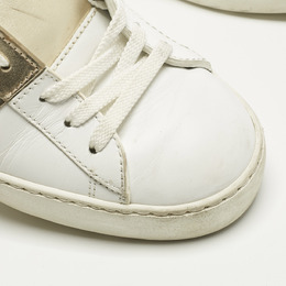 Valentino White/Gold Leather Rockstud Low Top Sneakers Size 38 1225010