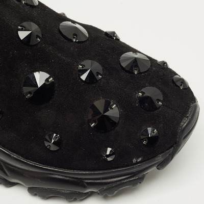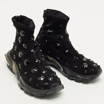 Valentino Black Suede Crystal Embellished High Top Sneakers Size 38.5 1224532