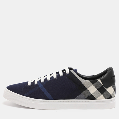 Burberry Indigo/Black Nova Check Denim and Leather Albert Low Top Sneakers Size 41 1223393
