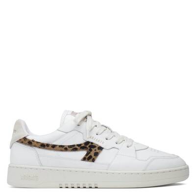 Axel Arigato Ladies Sneakers. SKU: F2812001-WHITE/LEOPARD. Color: White/Leopard. Axel Arigato Dice-A Low-Top Sneakers. This sneaker showcases a bold abstract A sweeping across the sidewall, blending vintage aesthetics with modern design elements. The upper is crafted from a mix of nubuck, polyester and suede; featuring paneled construction and perforated detailing for added texture and breathability. A metallic gold logo stamp adds a touch of refinement, while a branded woven tongue label, flat cotton laces, and a durable rubber sole complete the look. Upper: 87% Nubuck, 10% Recycled Polyester, 3% Suede. Handmade in Portugal. <br/><br/><b>Please visit the brand website for sizing information.</b>