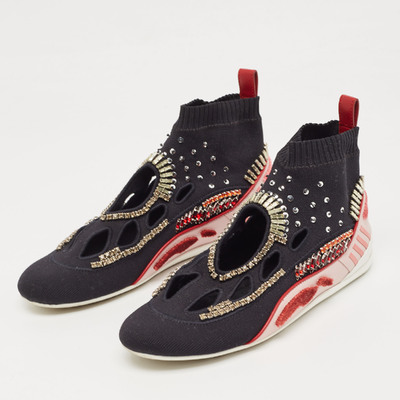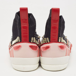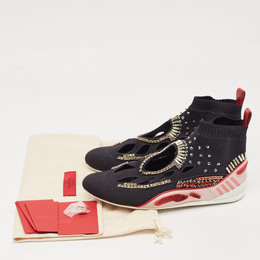 Valentino Black/Pink Knit Fabric High Top Sneakers Size 36 928341