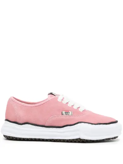 Baker OG suede sneakers from MAISON MIHARA YASUHIRO featuring rose pink, suede, logo patch at the tongue, mini logo tag, panelled design, front lace-up fastening, round toe, branded insole and flat rubber sole.