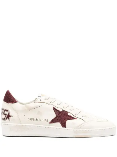 light beige/bordeaux red calf leather perforated detailing signature star patch to the sides debossed logo to the side logo patch at the tongue logo print to the rear round toe front lace-up fastening branded insole flat rubber sole