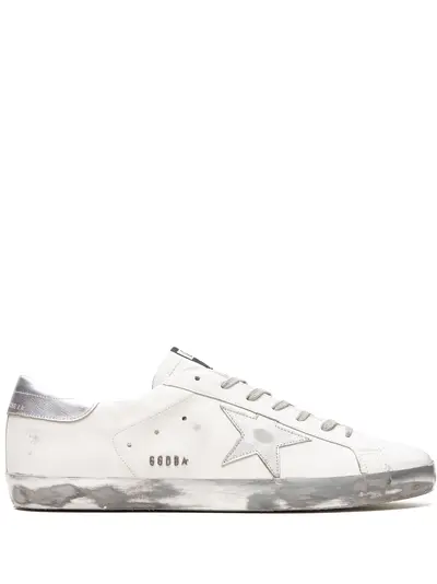 white/silver-tone leather distressed finish logo print to the side signature star patch to the sides perforated detailing round toe front lace-up fastening logo patch at the tongue branded heel counter flat rubber sole These styles are supplied by a premium sneaker marketplace. Stocking only the most sought-after footwear, they source and curate some of the most hard to find sneakers from around the world.