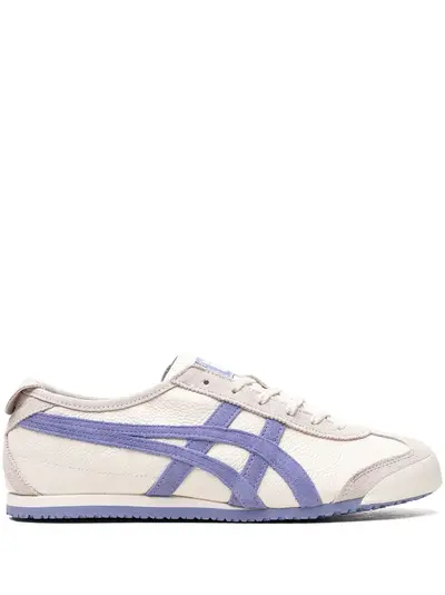 Mexico 66™ Vintage "Cream/Violet Storm" sneakers from Onitsuka Tiger featuring cream white, violet purple, leather, suede, signature Tiger stripes, logo patch at the tongue, branded heel counter, round toe, front lace-up fastening and flat rubber sole. These styles are supplied by a premium sneaker marketplace. Stocking only the most sought-after footwear, they source and curate some of the most hard to find sneakers from around the world..