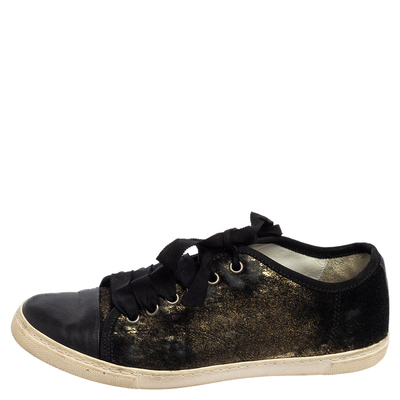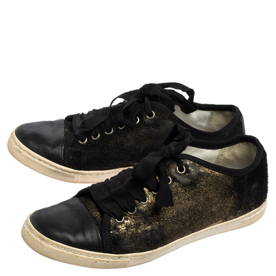 Simple, luxe, and versatile, these Lanvin sneakers are a must have Crafted from quality materials in gold and black shades, these sneakers are complete with laced up vamps and comfortable insoles.