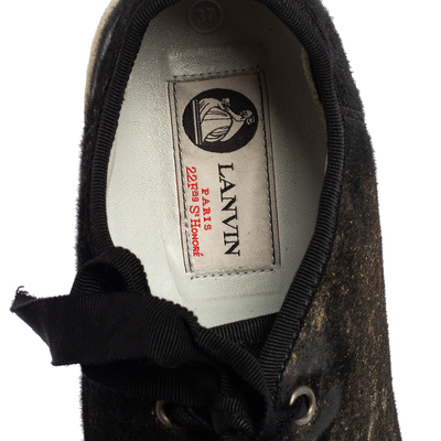 Lanvin Black/Gold Calf Hair and Leather Low-Top Sneakers Size 37 559919