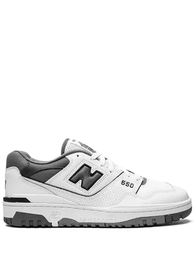 White/dark grey 550 low-top sneakers from NEW BALANCE featuring canvas/calf leather, logo patch at the tongue, logo patch to the side, front lace-up fastening, round toe and ridged rubber sole. These styles are supplied by a premium sneaker marketplace. Stocking only the most sought-after footwear, they source and curate some of the most hard to find sneakers from around the world..