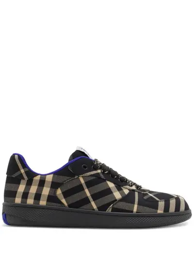 black/beige check pattern signature Equestrian Knight motif logo patch at the tongue round toe front lace-up fastening branded insole flat rubber sole